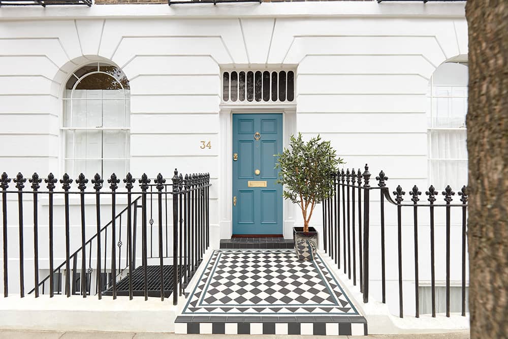 When deciding on your shade of pink, it’s worth considering whether it suits your property style. There are plenty of shades to choose from, including dusky pinks, mulberry shades or blush. Each one can beautifully complement features such as white pilasters, greenery that frames an entrance and original monochrome tiling – a popular feature on pathways and doorsteps of Victorian homes.