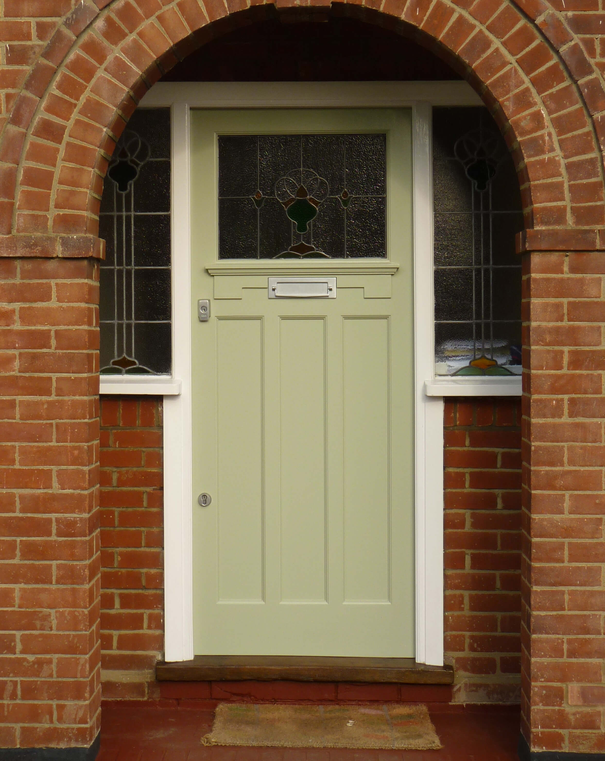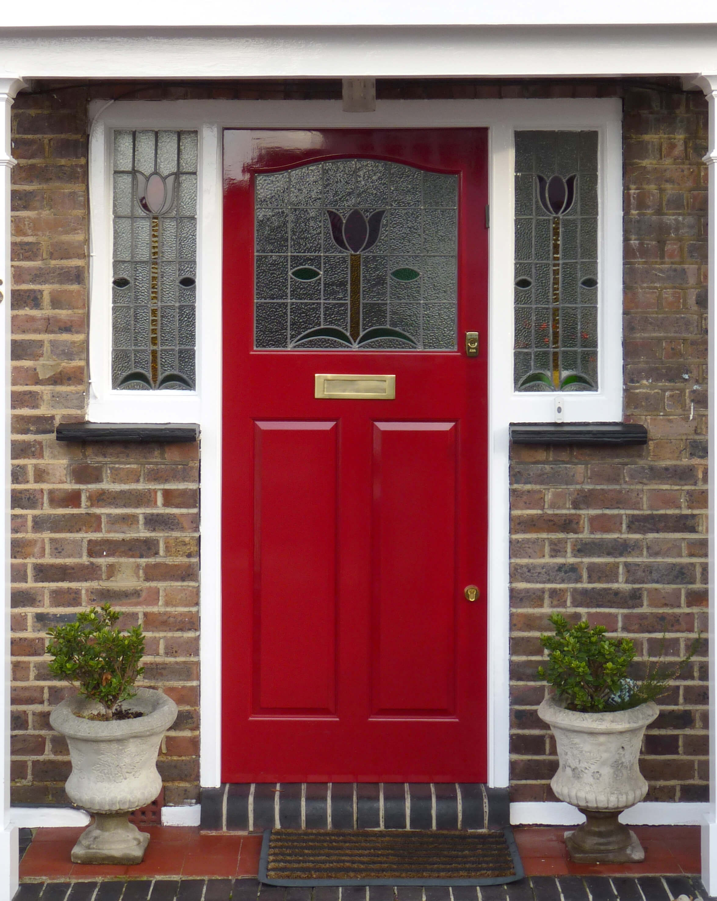 Classic 20s/30s door design with stained glass panel and sidelights and chrome door furniture. This much-loved...