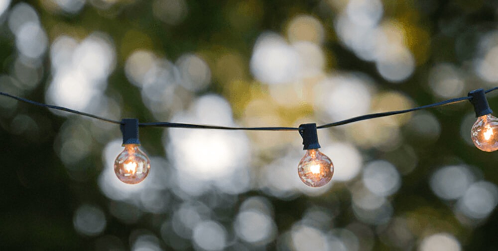 For an ‘enchanted garden’ feel, hang bulb lights or sophisticated glass bottles with tea lights inside, these look great on exposed walls or features like gazebos and rose arches. Draping a rope of solar lights or battery powered fairy lights around trees or hedges is a quick and easy solution that can be removed at any time. Battery-powered hurricane lamps on top of walls or solar-powered lights along pathways are a great idea as there’s no trailing wires or a need to plug them into a power source.