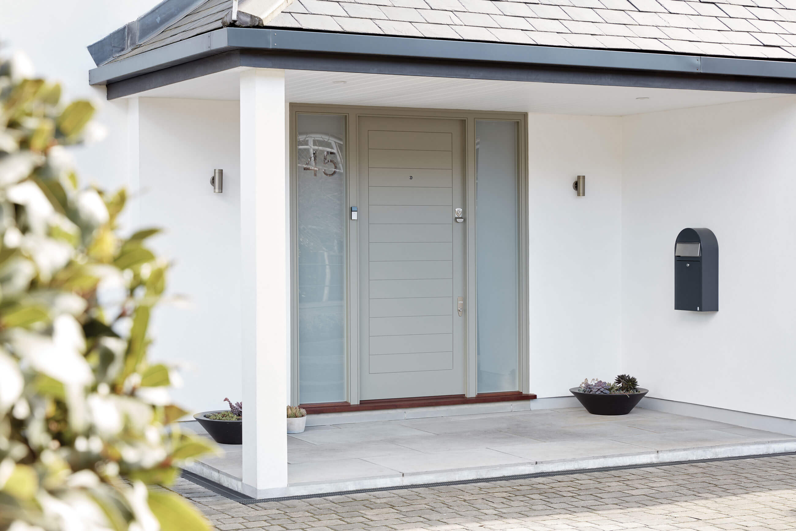 Simple, sleek and functional. Oversized or etched into opaque glass. Polished or matte. When it comes to door furniture and glazing, a front door can rip up the rule book. To further showcase the minimalist style of a contemporary front door, letterboxes and numerals can be incorporated into surrounding panels or wall-mounted onto the brickwork.
