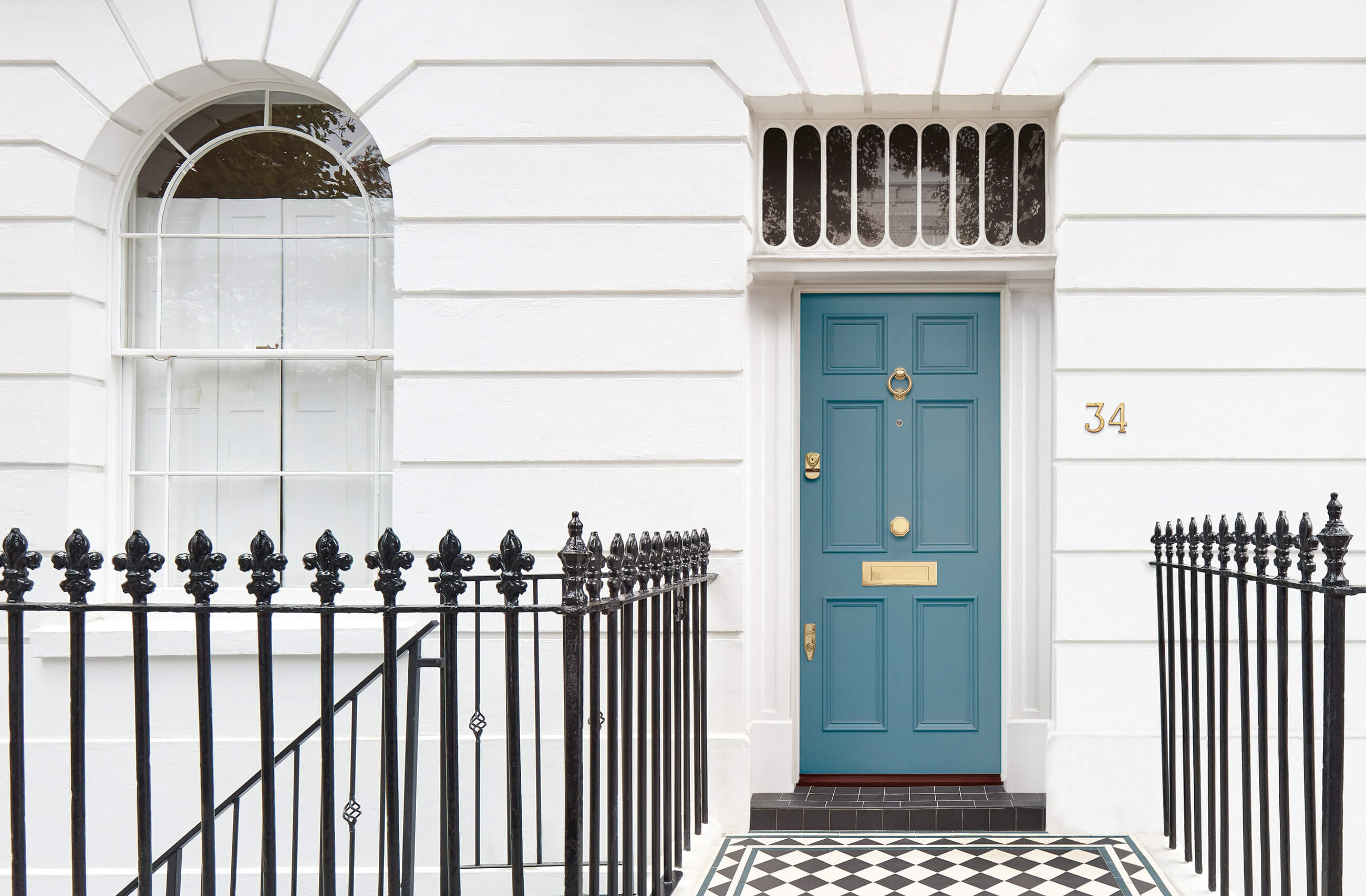 Both a creative and cheery shade of blue, Cornflower works well on classic four and six-panel doors, adding an unexpected but stylish burst of colour. This inviting shade complements pristine white stone façades and black and white tiling, giving them an instant lift. If you want to inject a little more personality and enhance the colour further combine with warm brass door furniture.