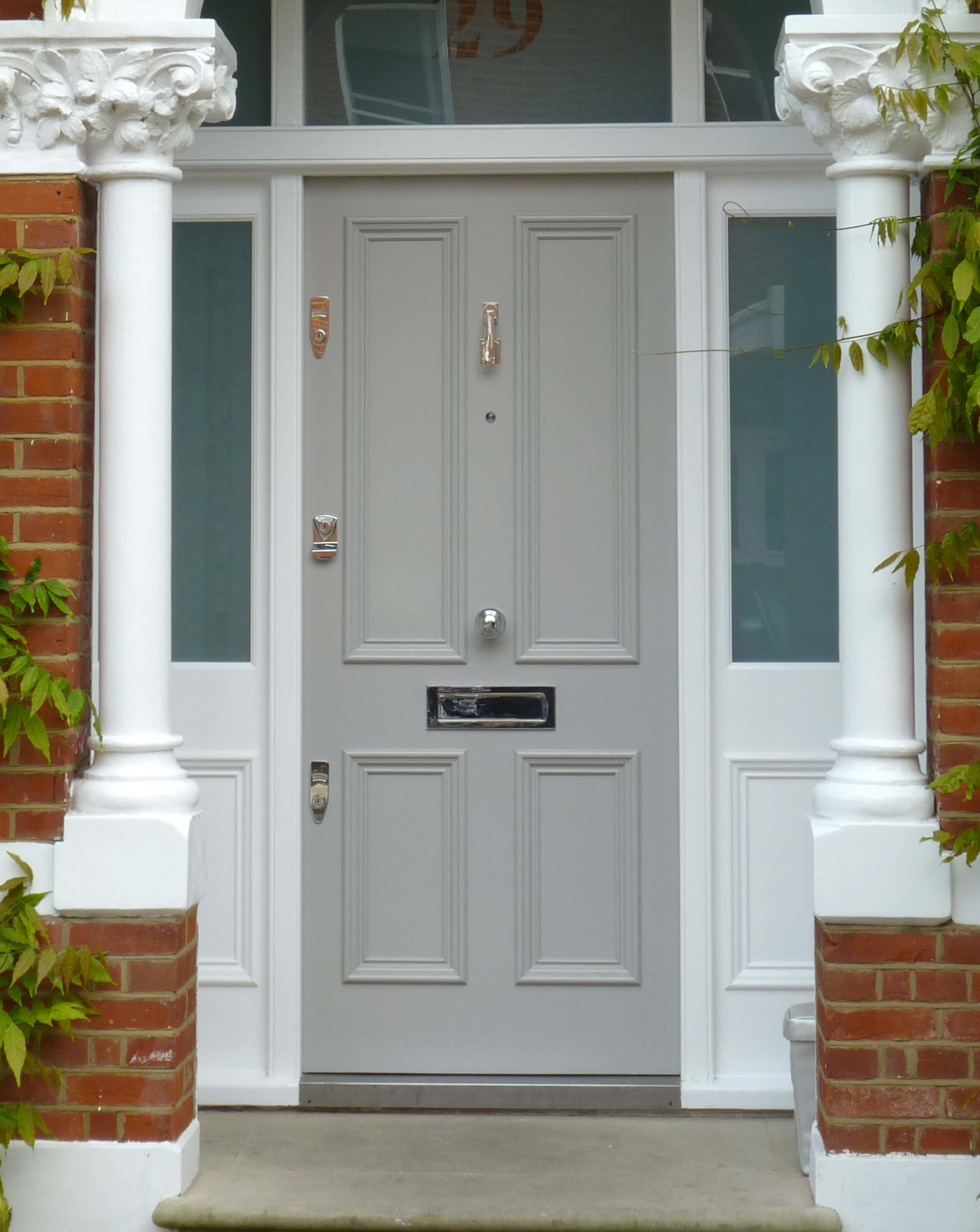 This dark grey Victorian 4 panel door is the perfect example of how to create a stylish and sophisticated front door using traditional design elements. The moody hues of the deep grey contrast perfectly against the white frame and garden greenery to create door with enviable kerb appeal.