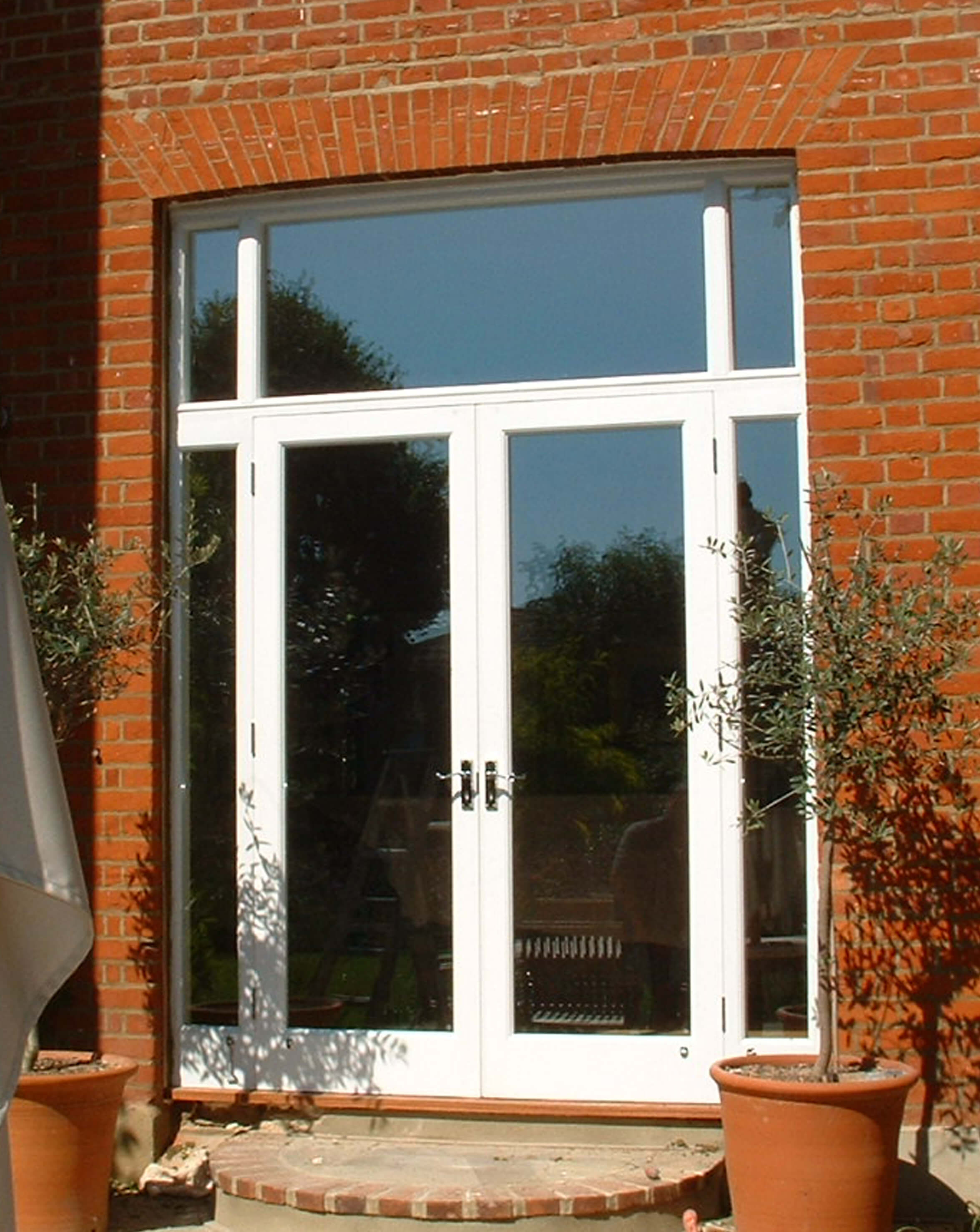 Double garden doors with side lights and extensive fanlight detail. Finished in white and fitted...