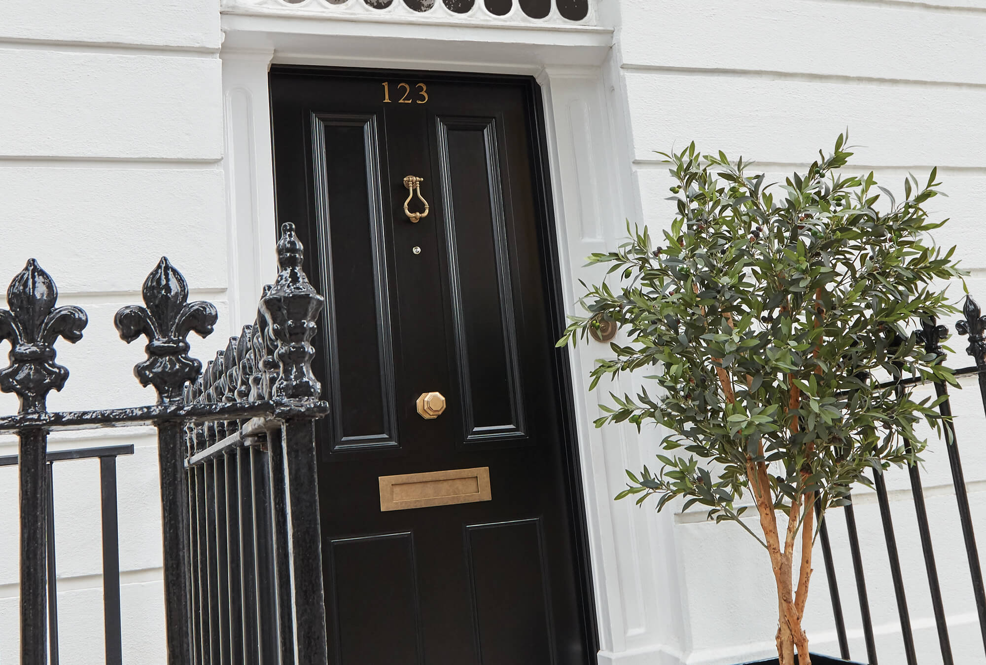 Our classic black doors are hugely popular on Pinterest. This beautiful six-panel Victorian door has a dark matte paint finish with brass door furniture in keeping with its timeless surroundings. When designing a Victorian door, we will consider the look and presentation of the entire front elevation of your home.