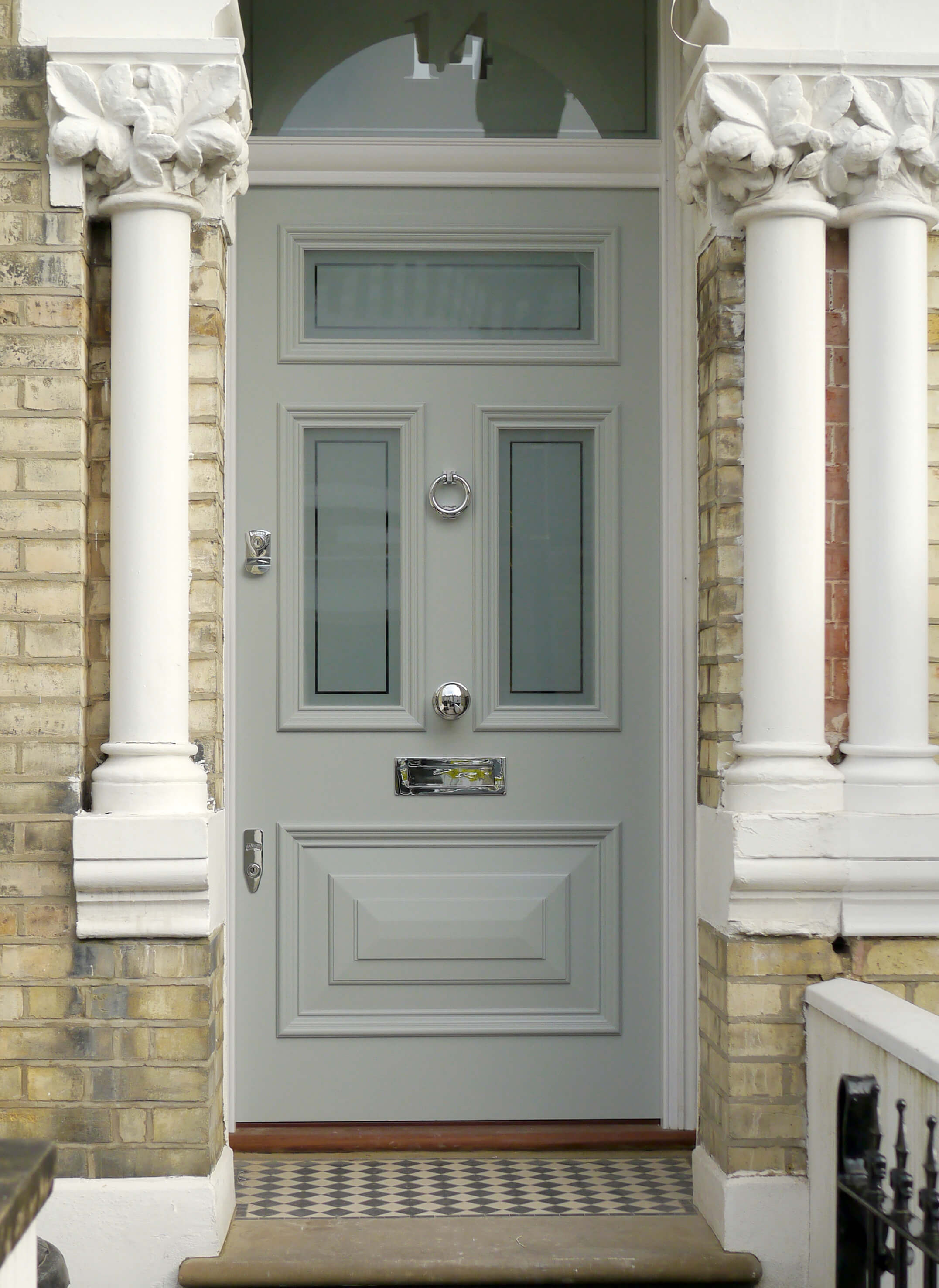 Front doors were often large and heavy creating imposing doorways. However, sturdy the real thing looks, it’s unlikely to incorporate the hi-tech security systems and strong locks of a modern door. A good quality reproduction will enhance security as well as kerb appeal. Edwardian doors were elegantly carved and surrounded by wooden or stone porches. Designs of this period often feature colourful Art Nouveau style stained glass sidelights and fanlights which can be restored or refurbished. A bespoke reproduction can be double glazed for added warmth, noise reduction and security without compromising authentic style.